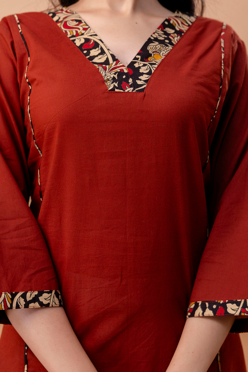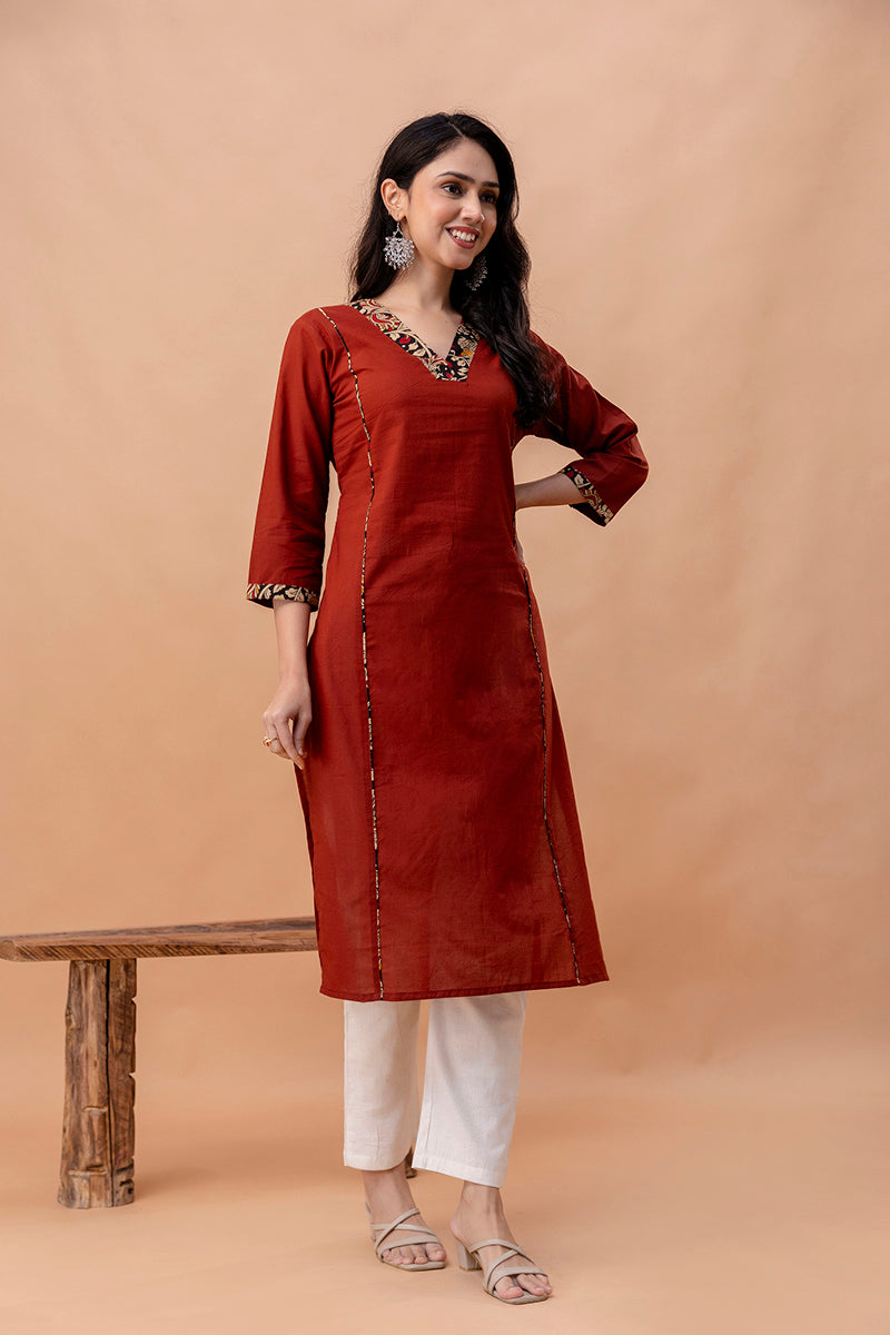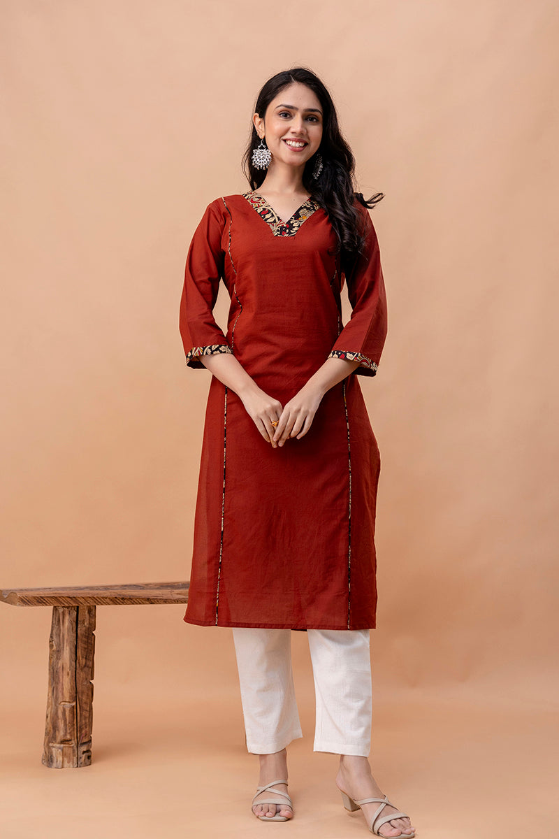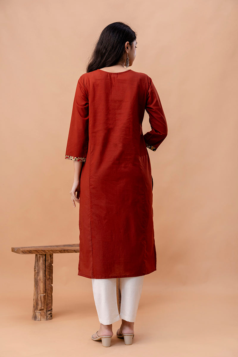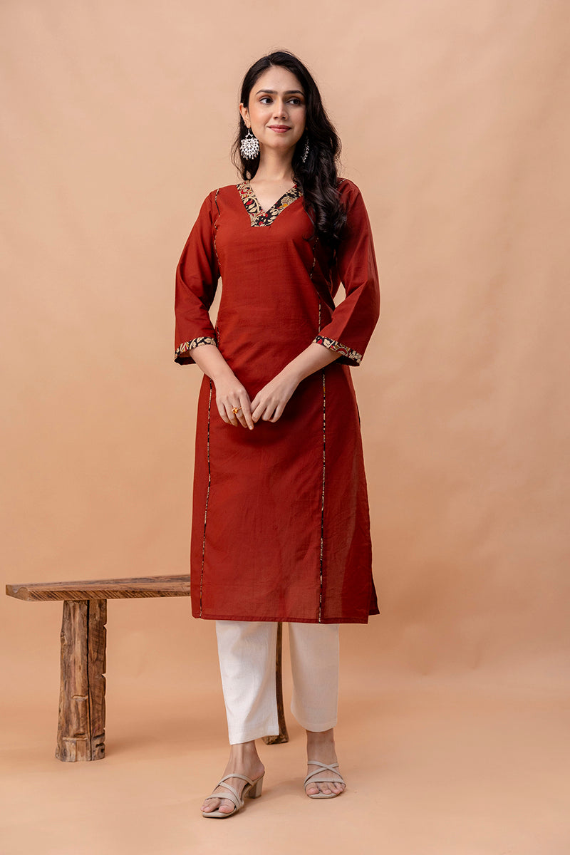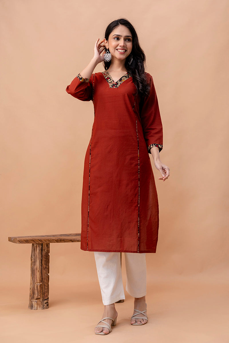 Aarohi Rust Straight Kurti – Elegant Everyday Ethnic Wear