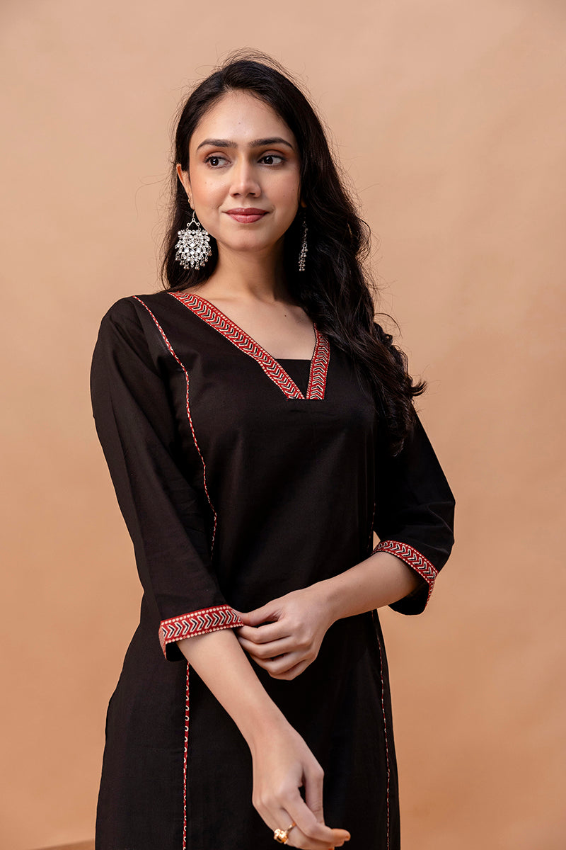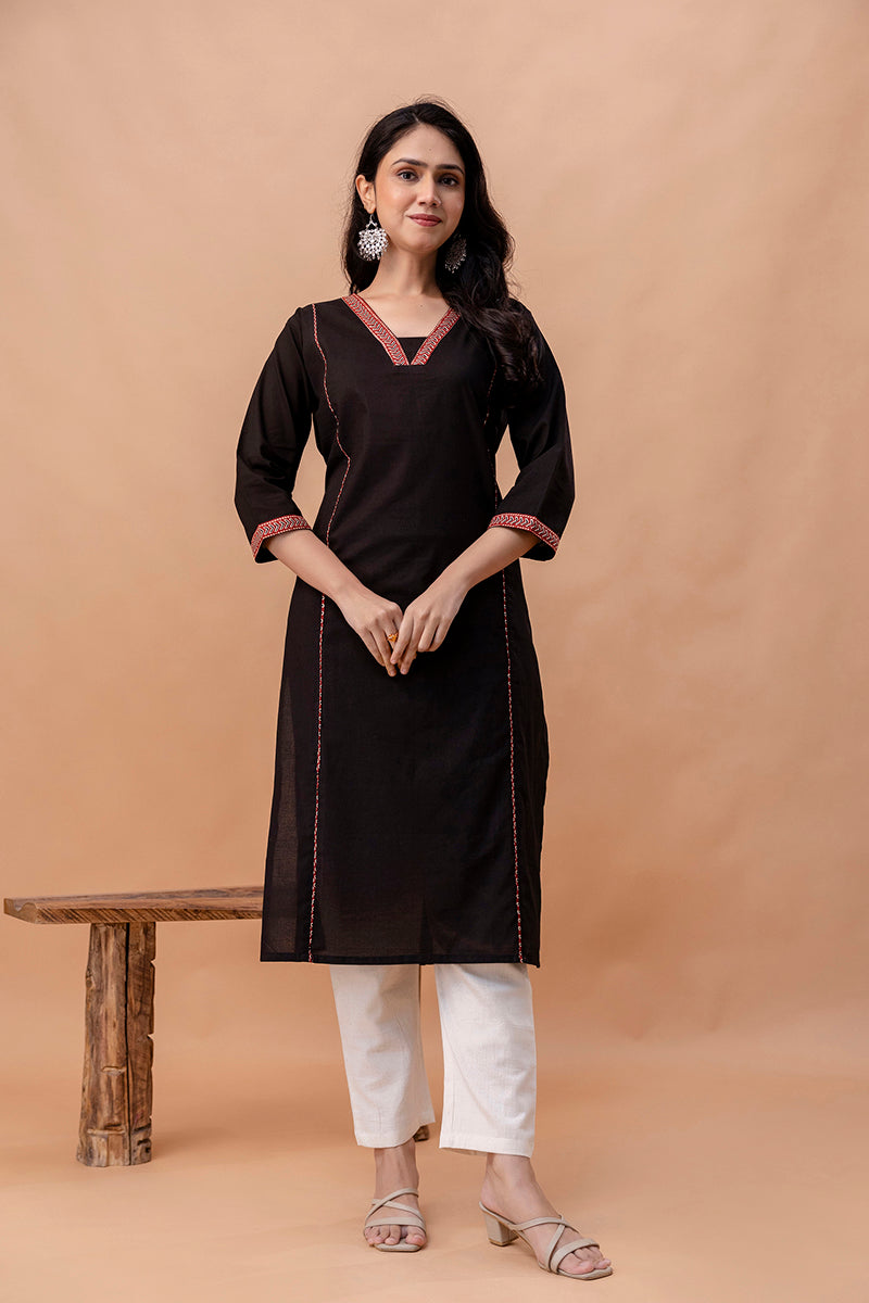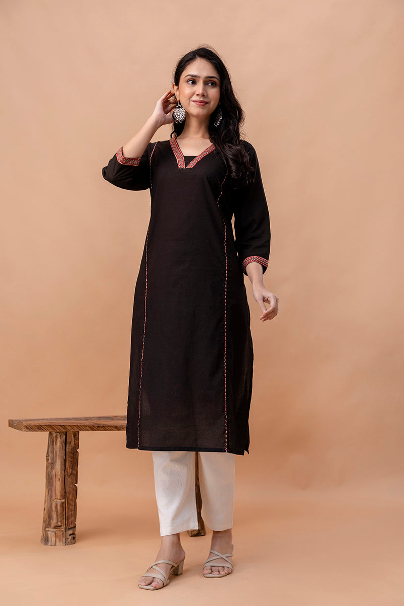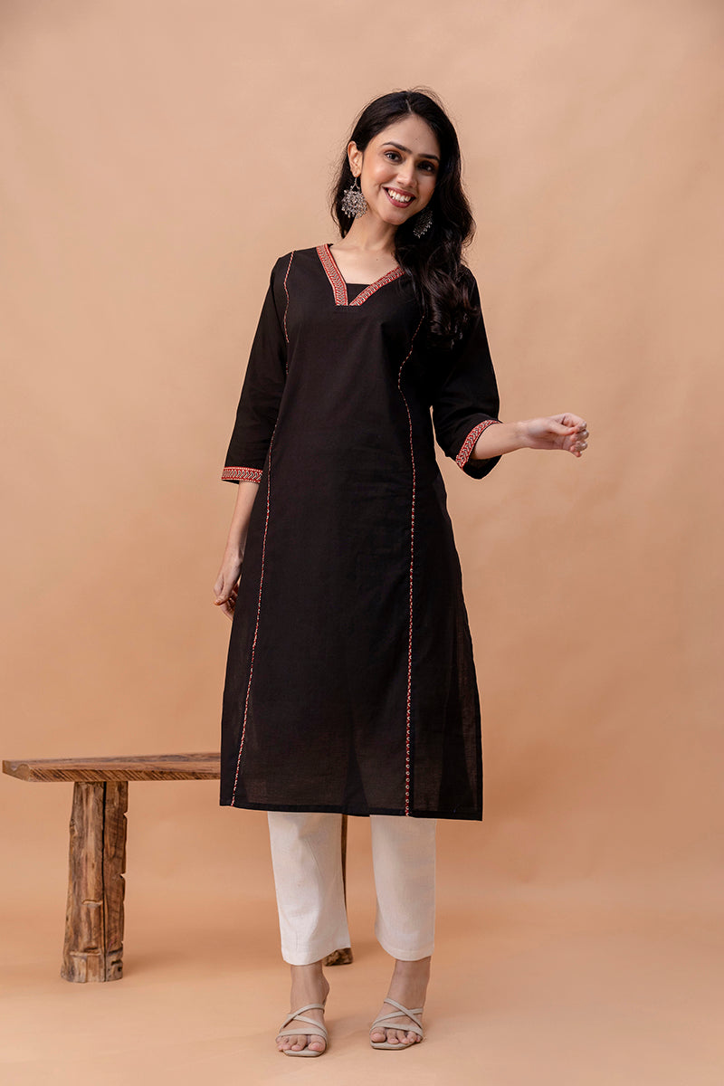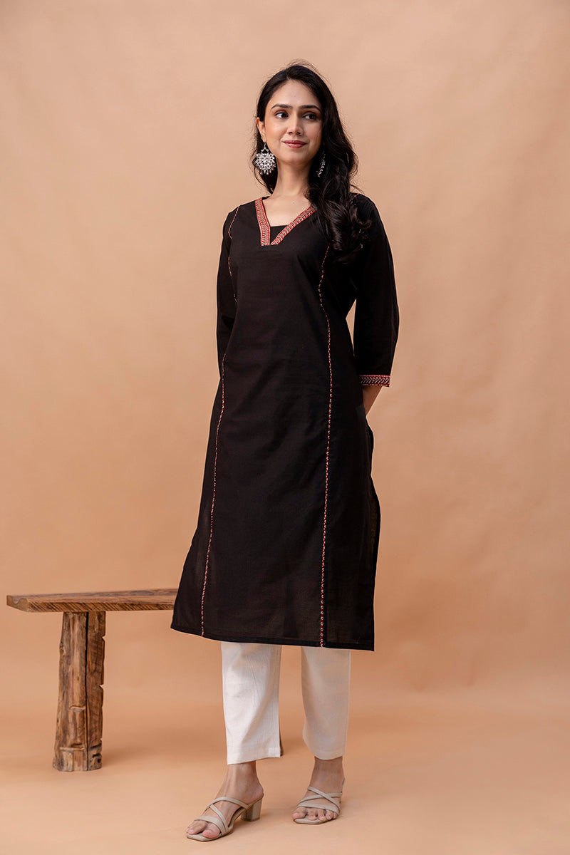 Aira Black Straight Kurti – Minimal Elegance for Everyday Wear