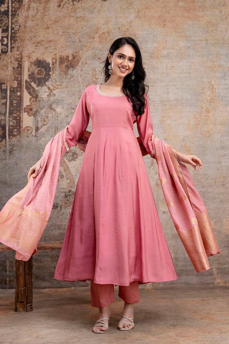 Meera Blush Pink Kurta Set with Dupatta – Elegant Festive Wear