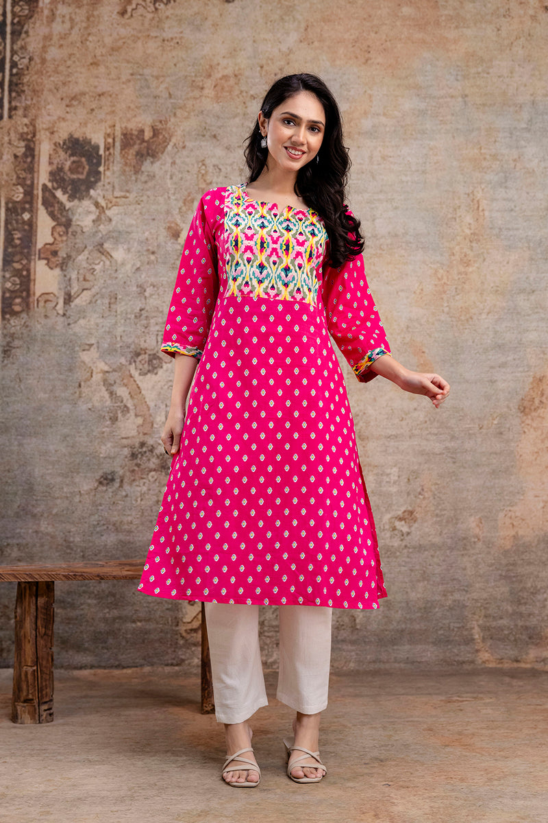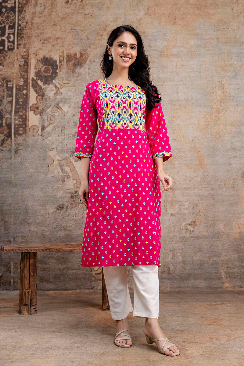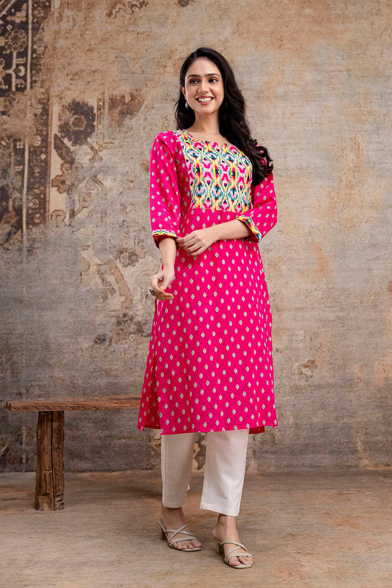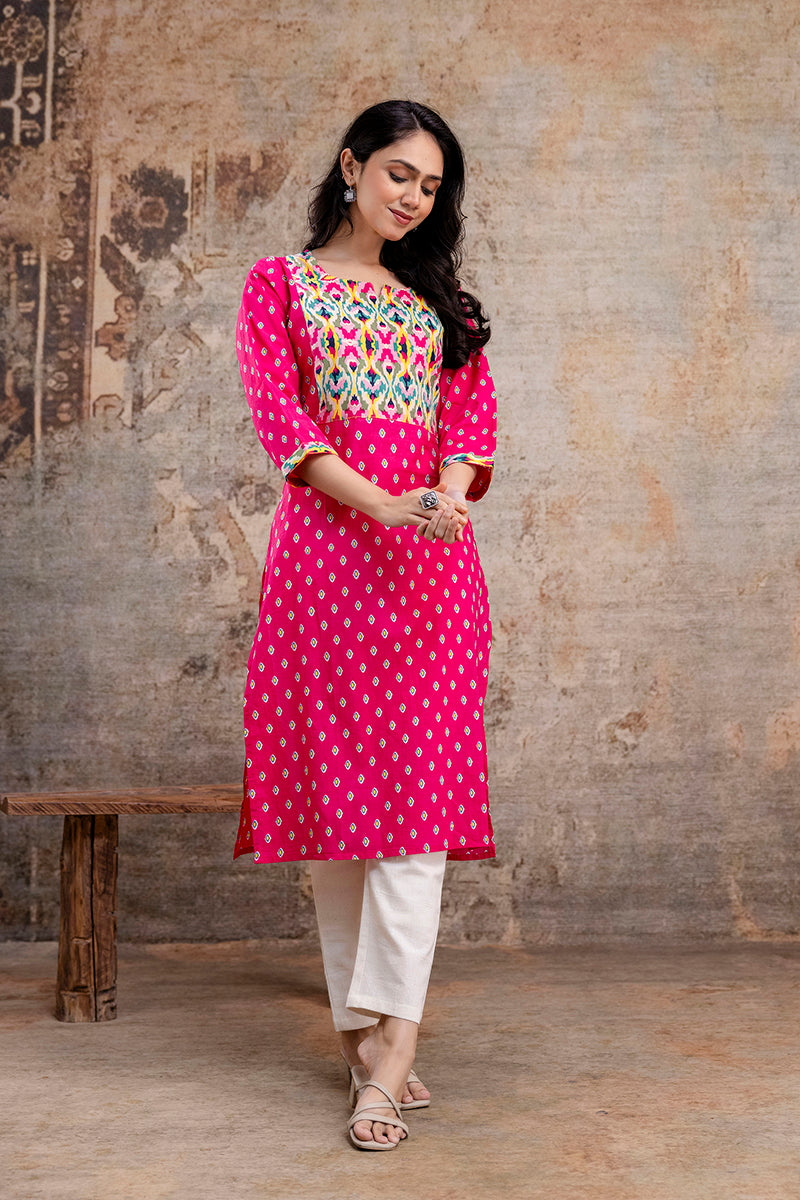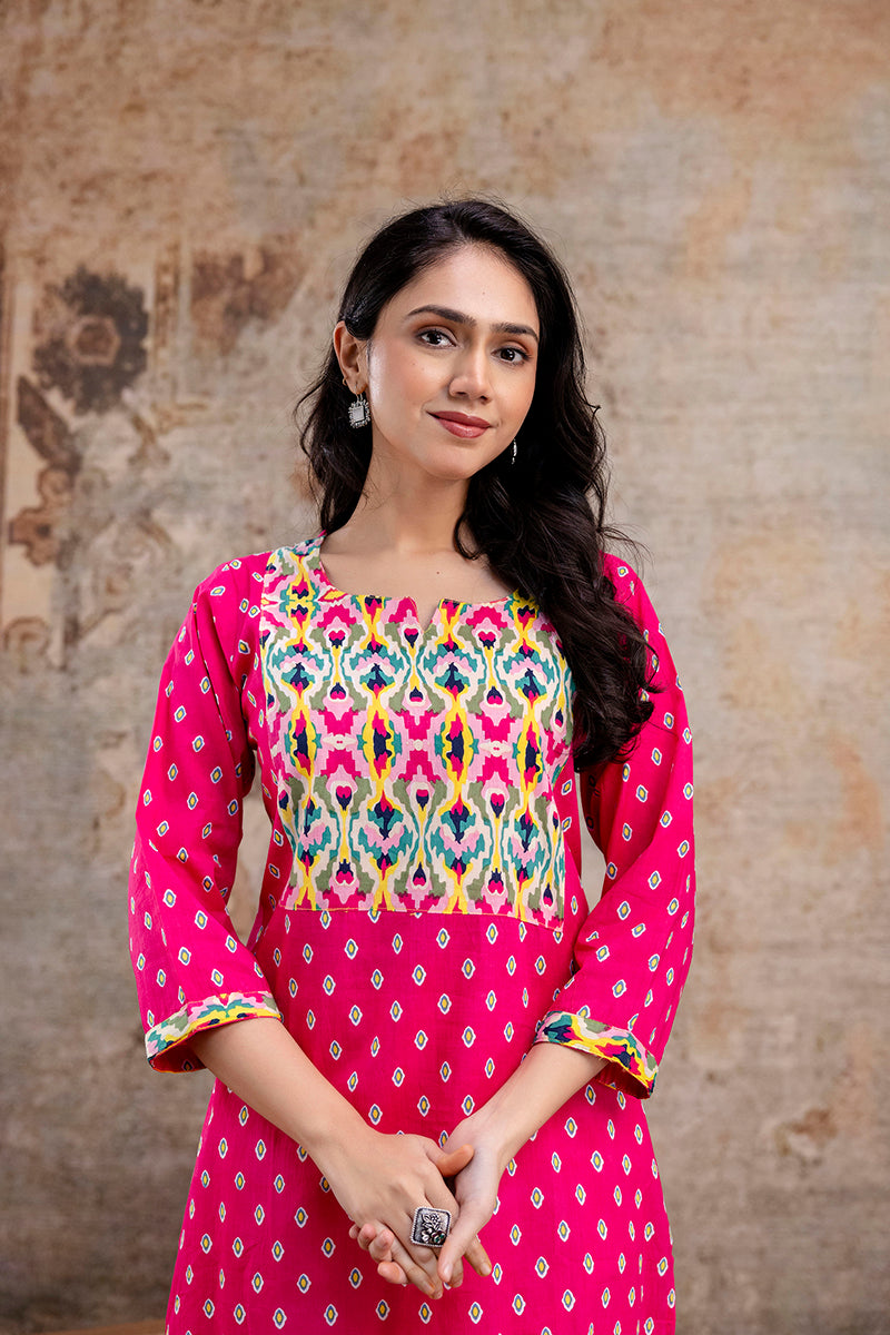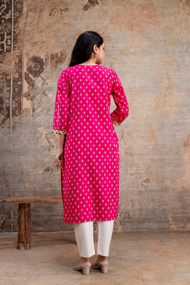 Alya Mustard Cotton Straight Kurti – Floral Block Print Everyday Ethnic Wear