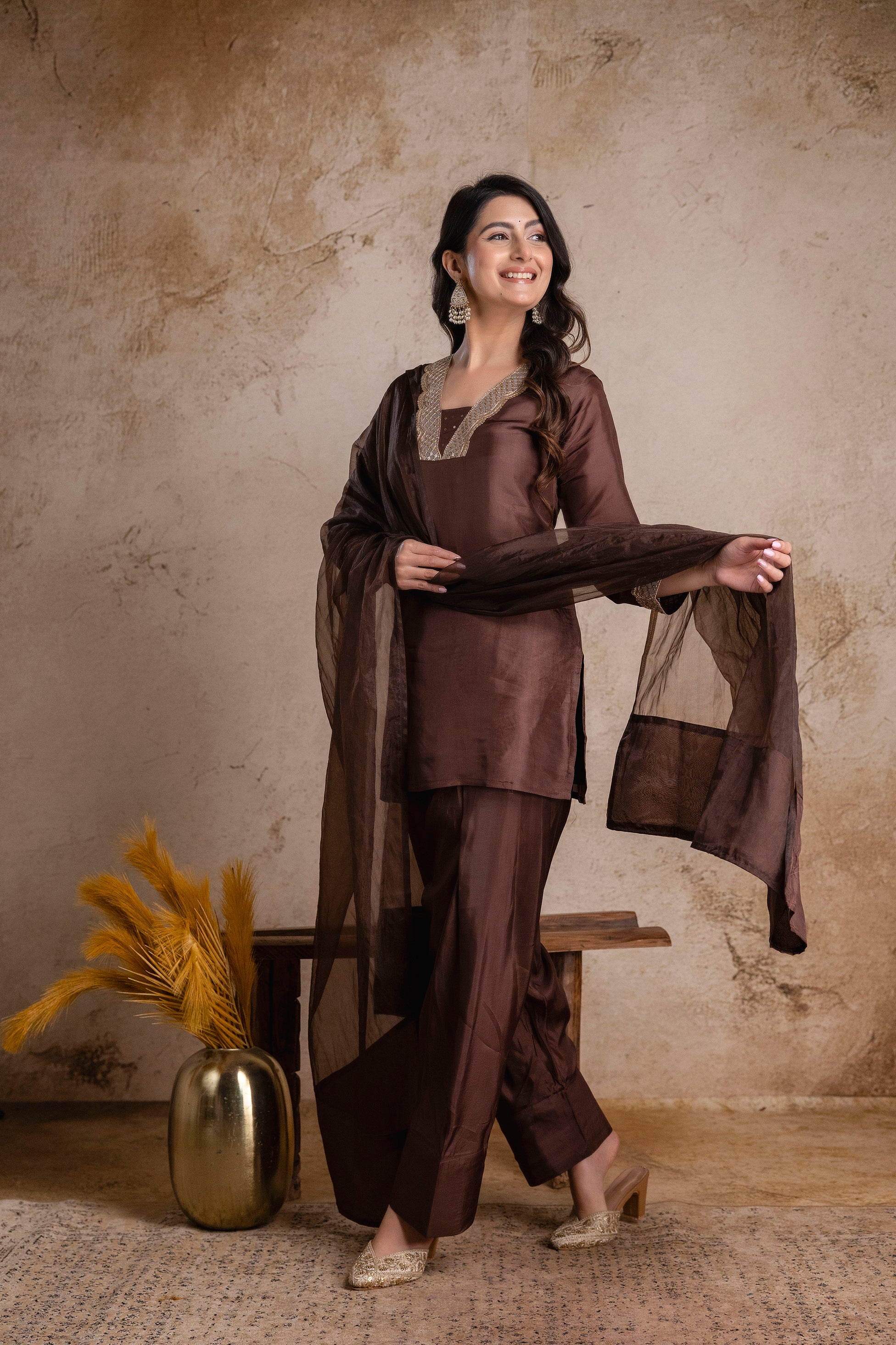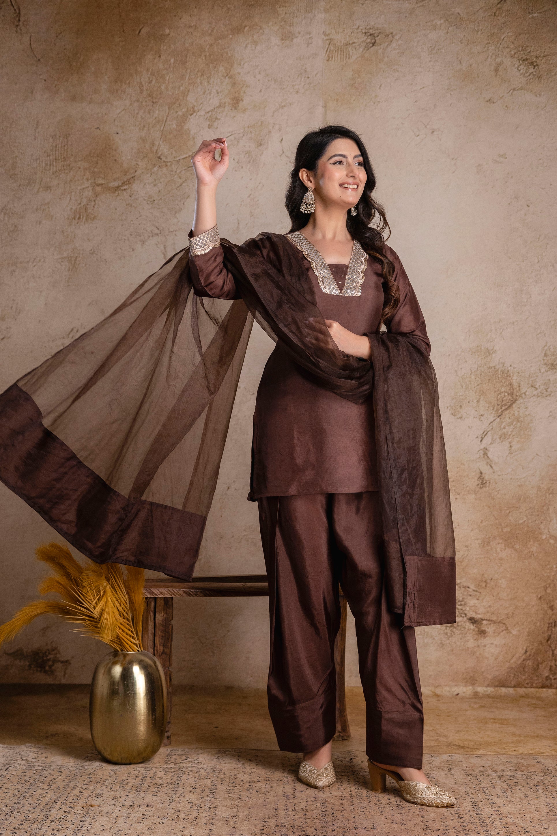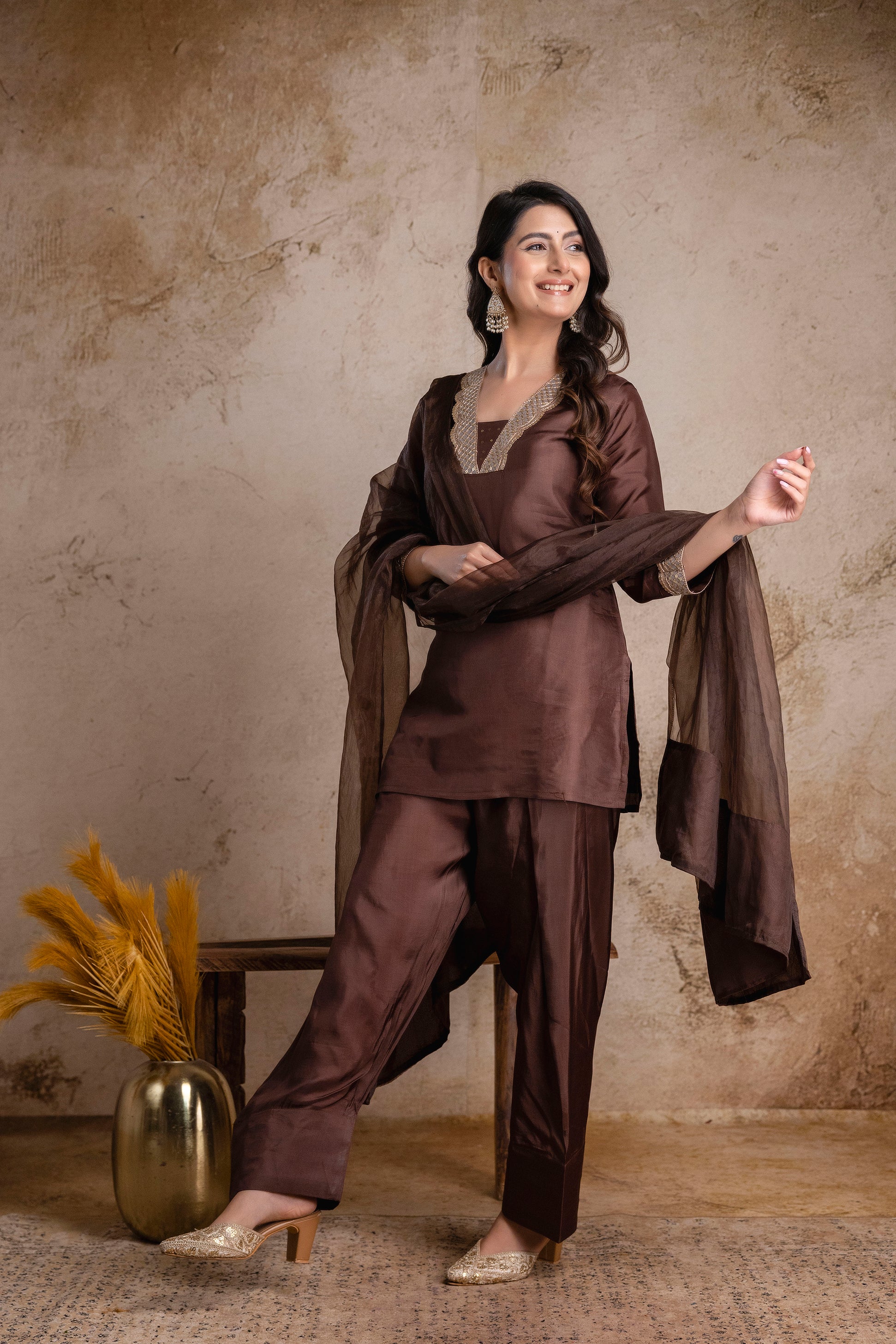 “Noor-E-Mocha” Silk Suit Set with Dupatta