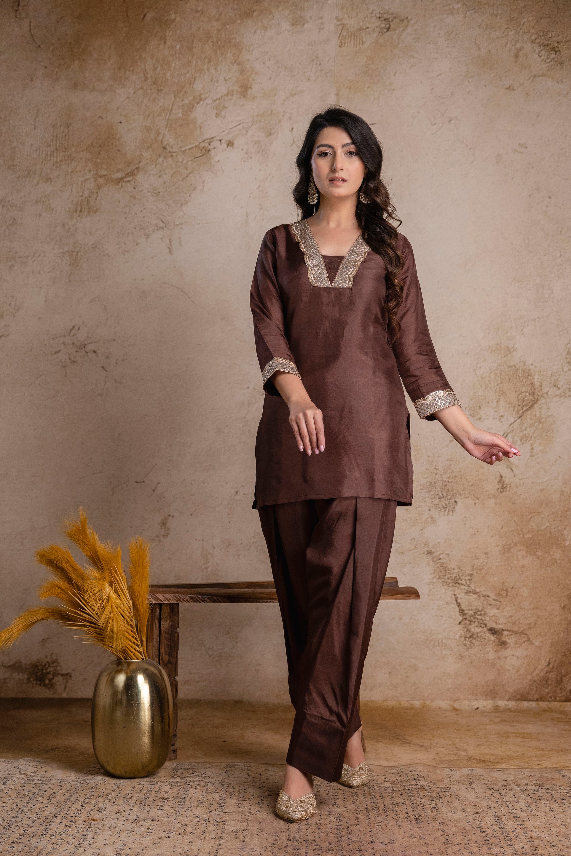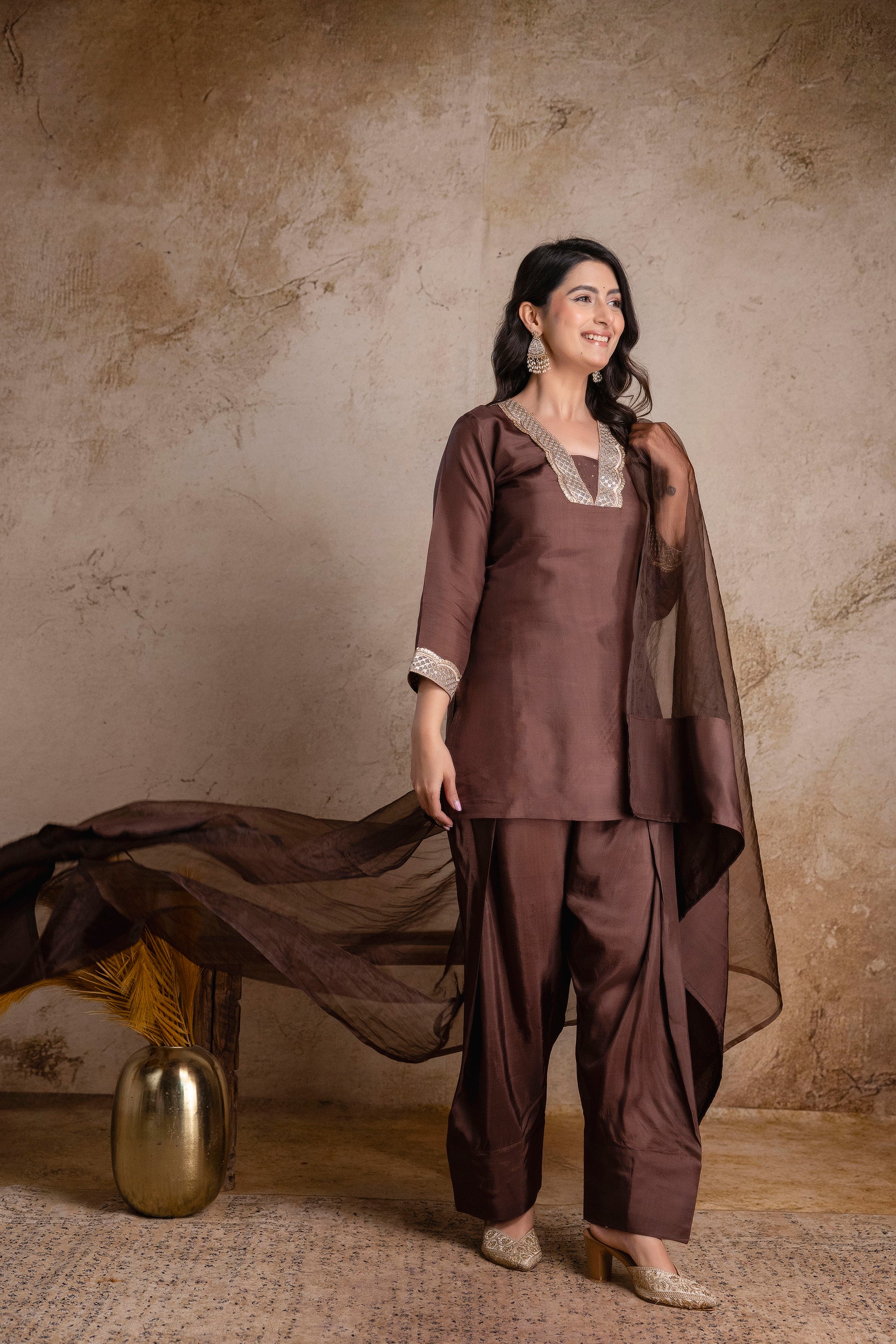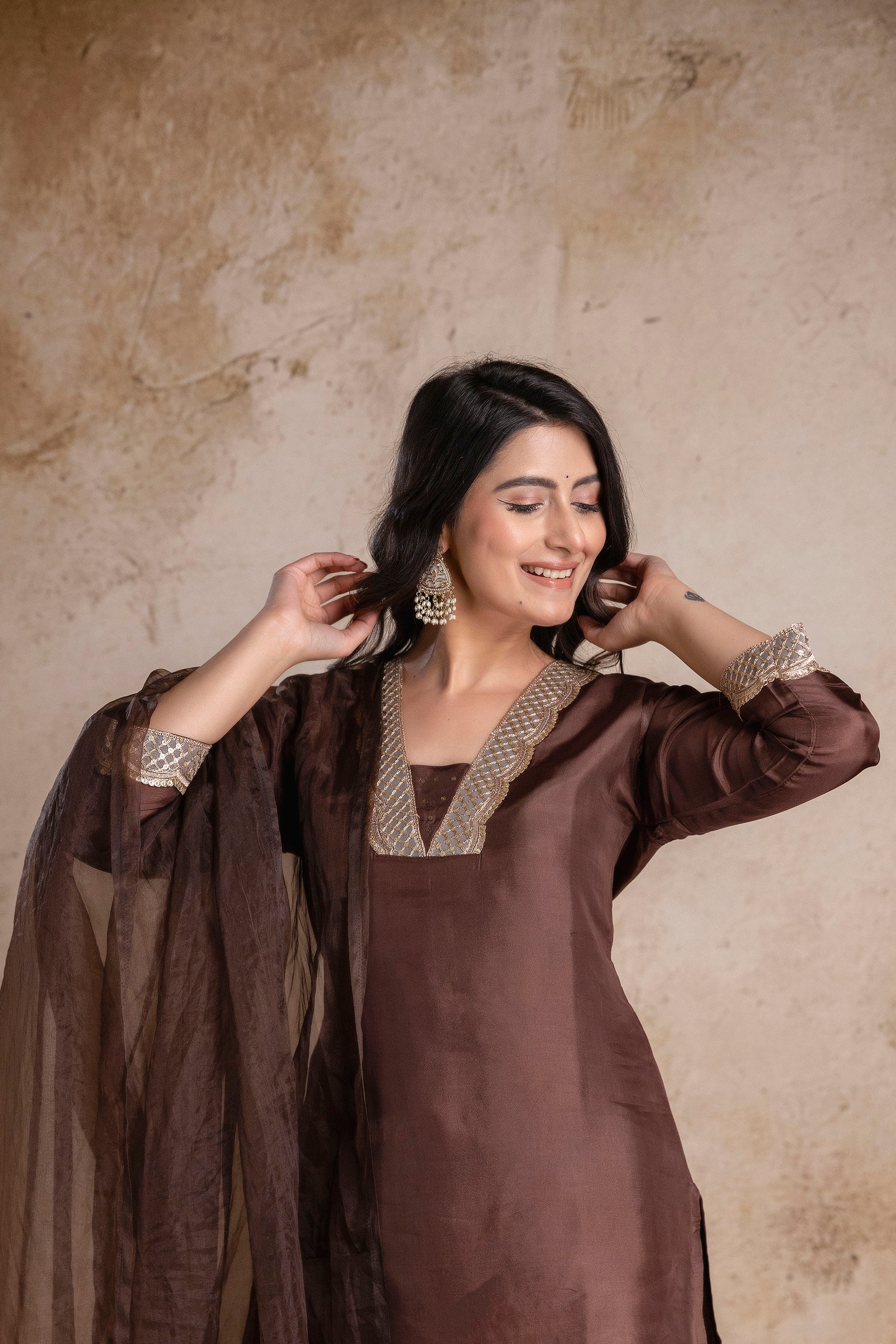 “Noor-E-Mocha” Silk Suit Set with Dupatta