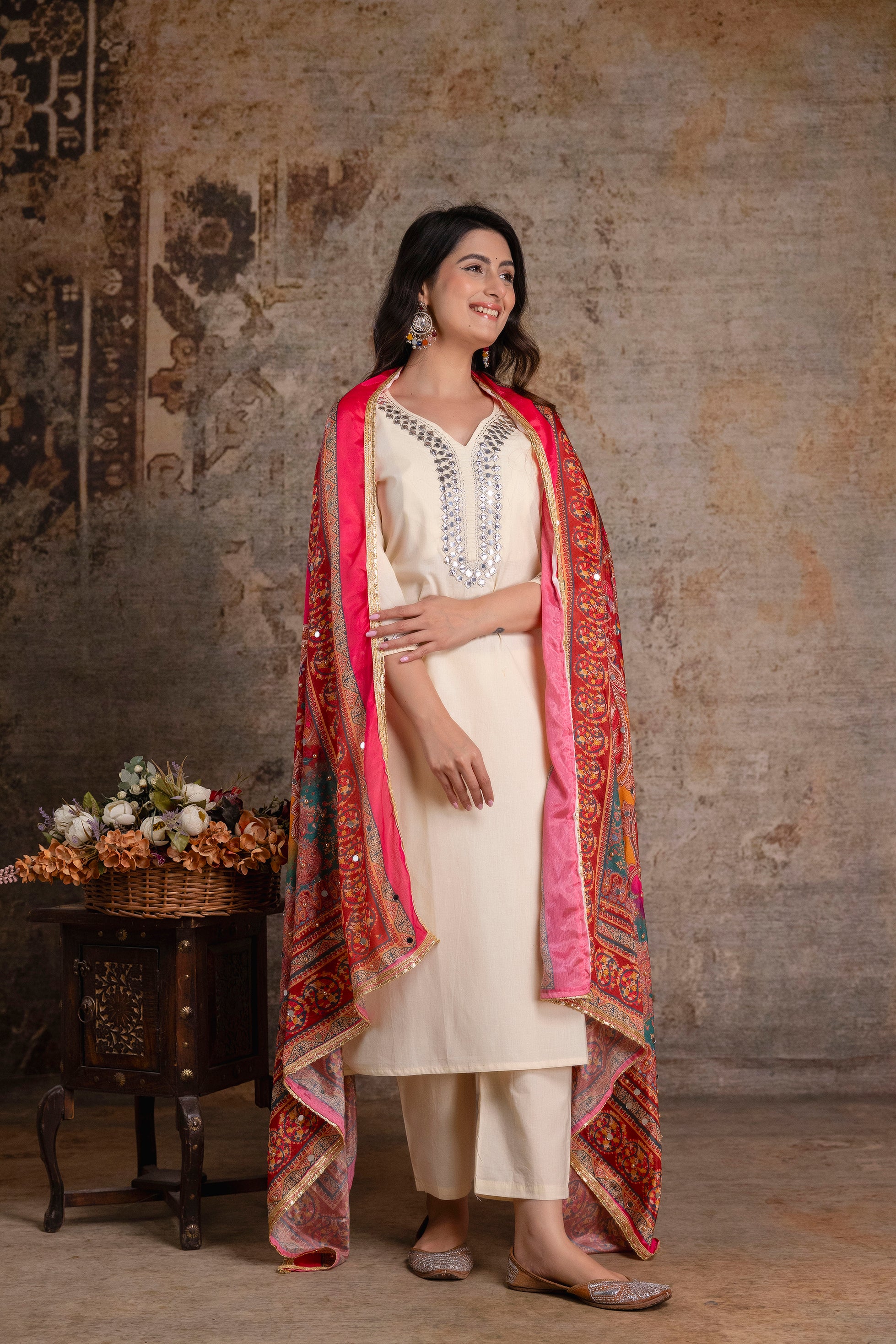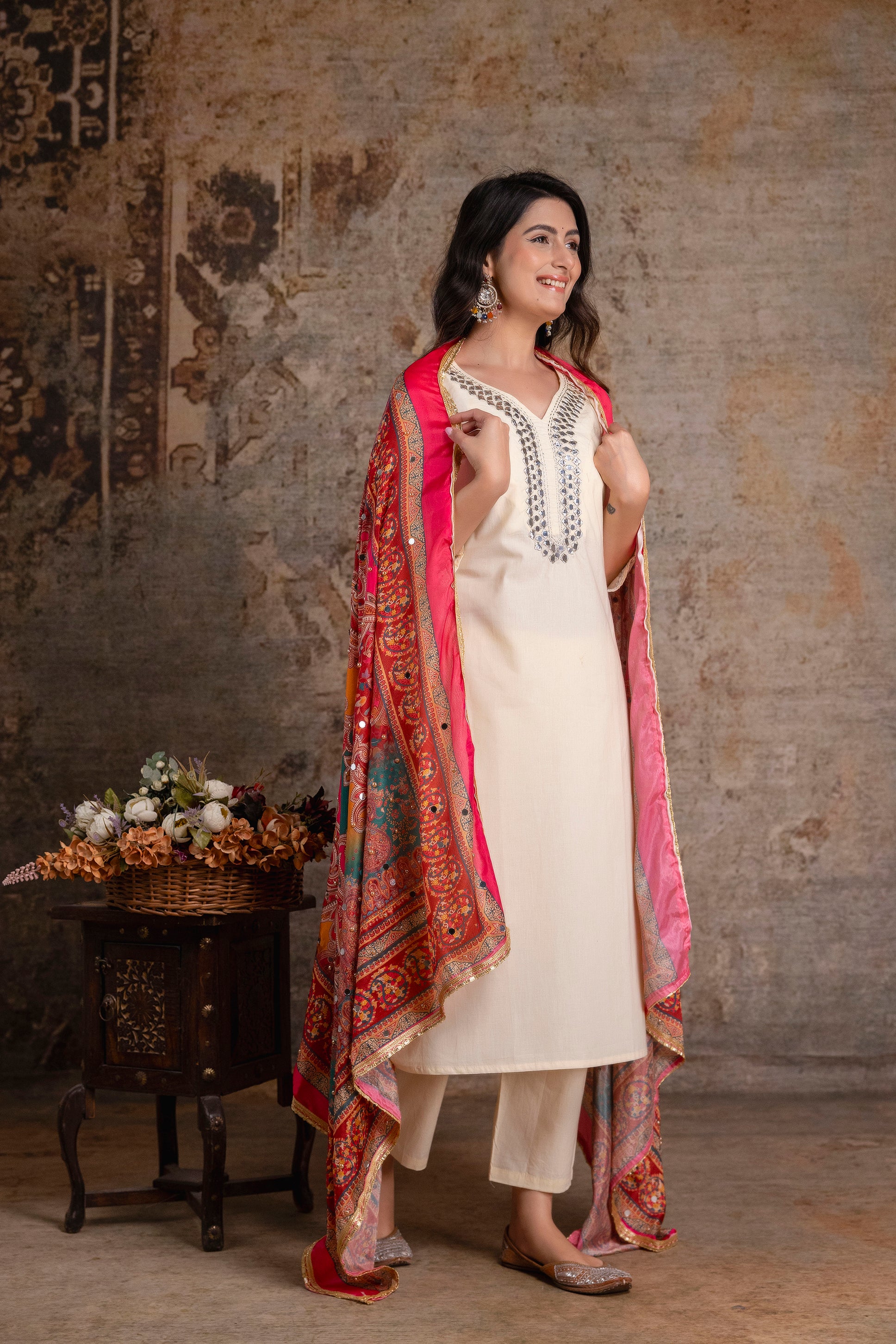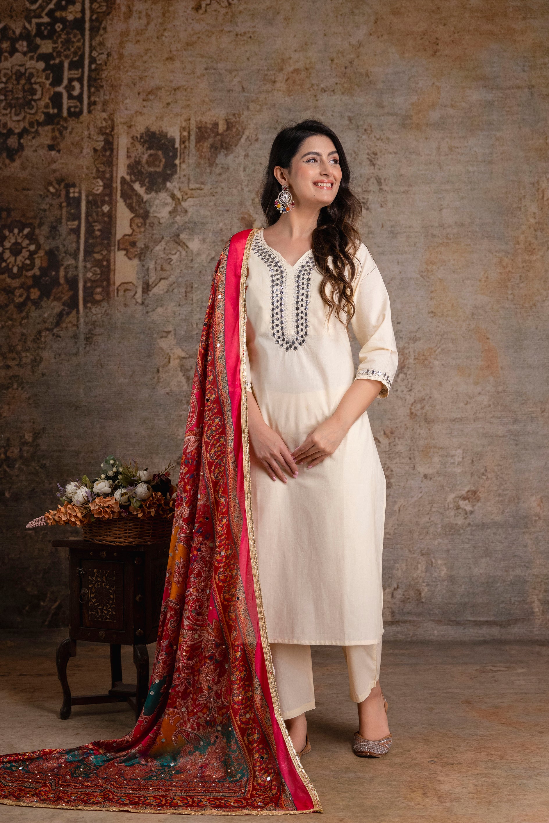 Royal Ivory Kurta Set with Ornate MulticolorDupatta