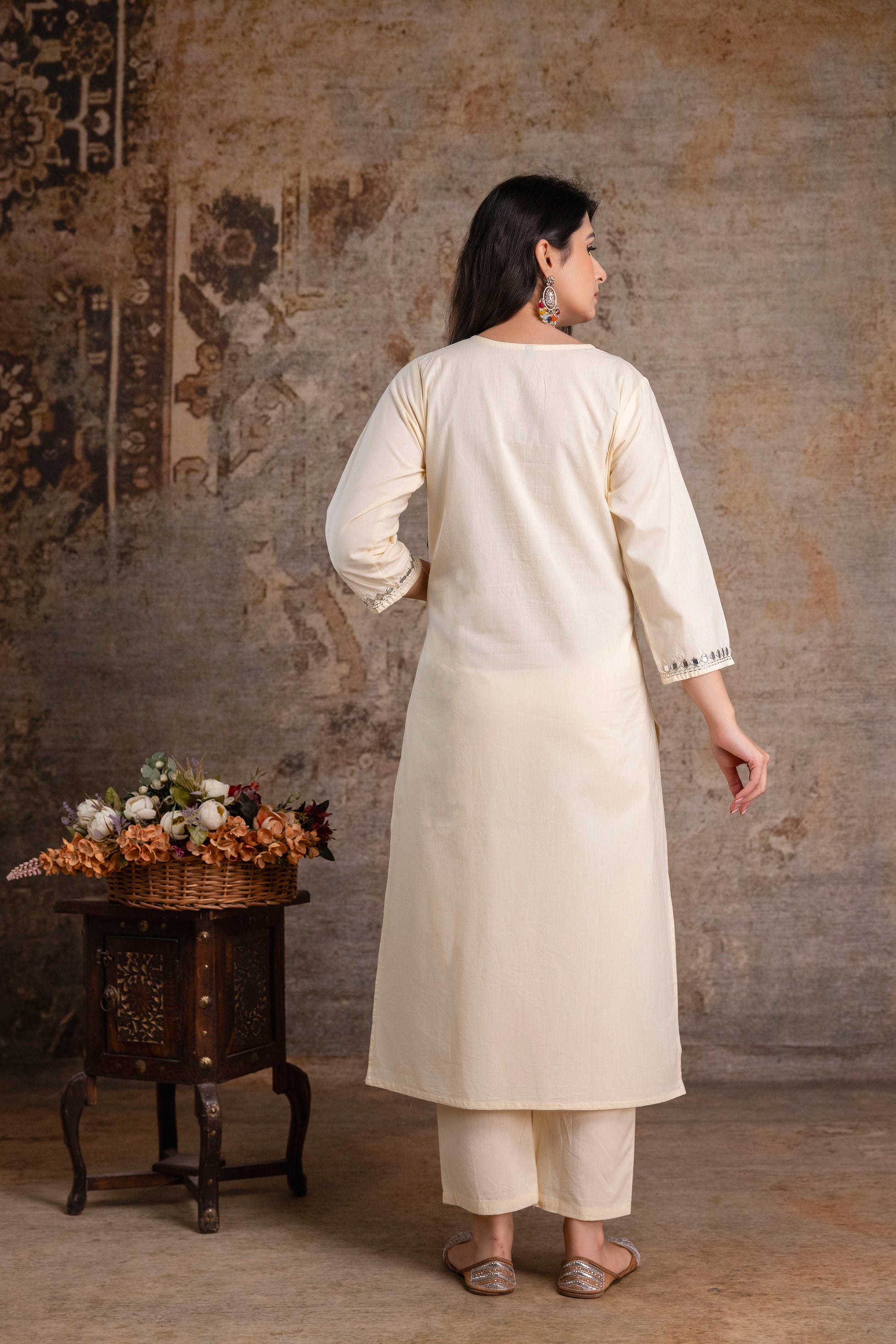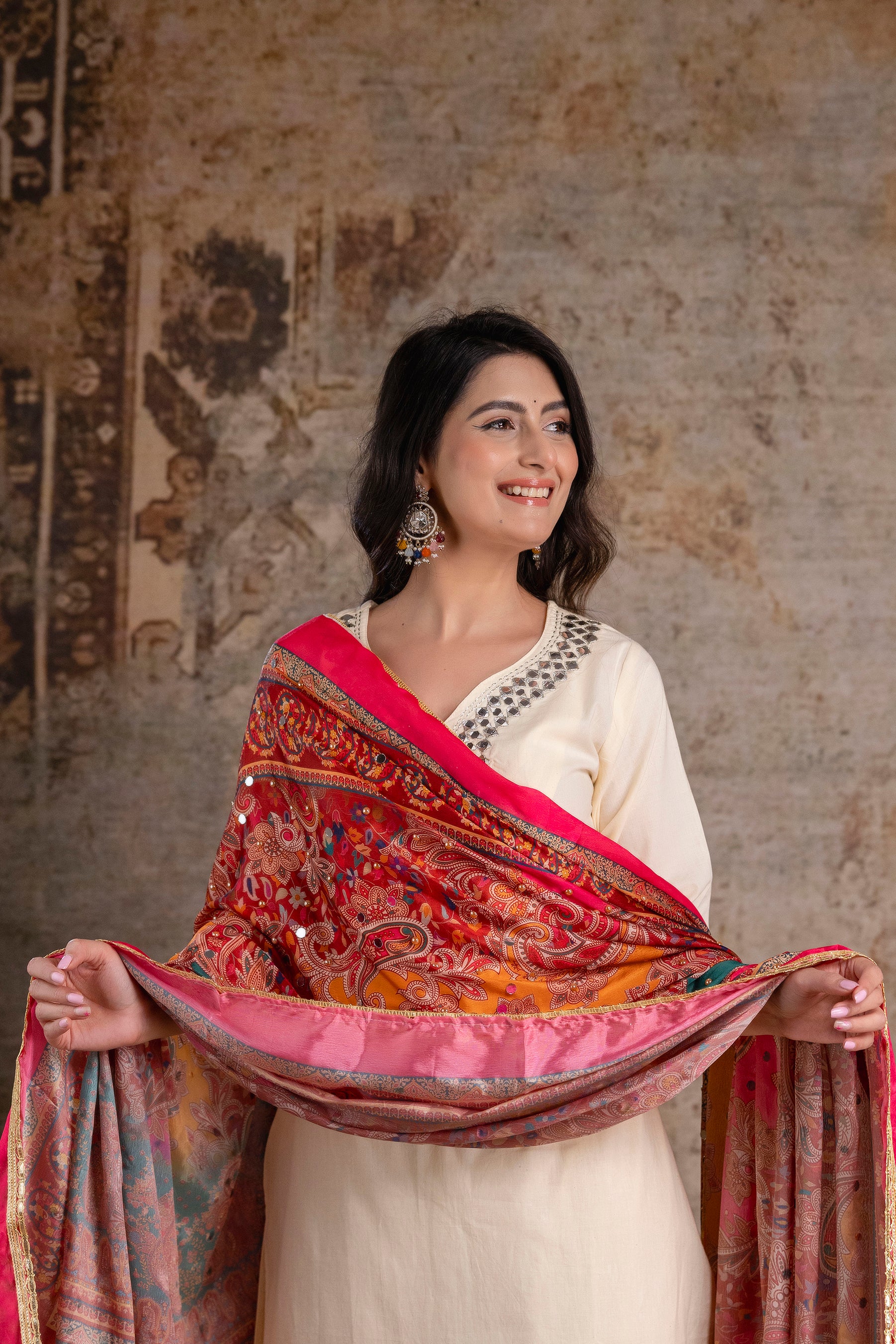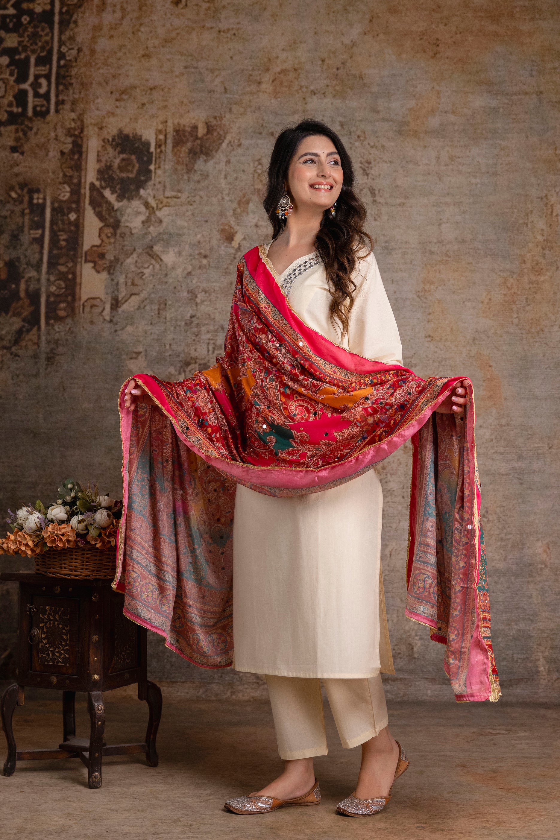 Royal Ivory Kurta Set with Ornate MulticolorDupatta